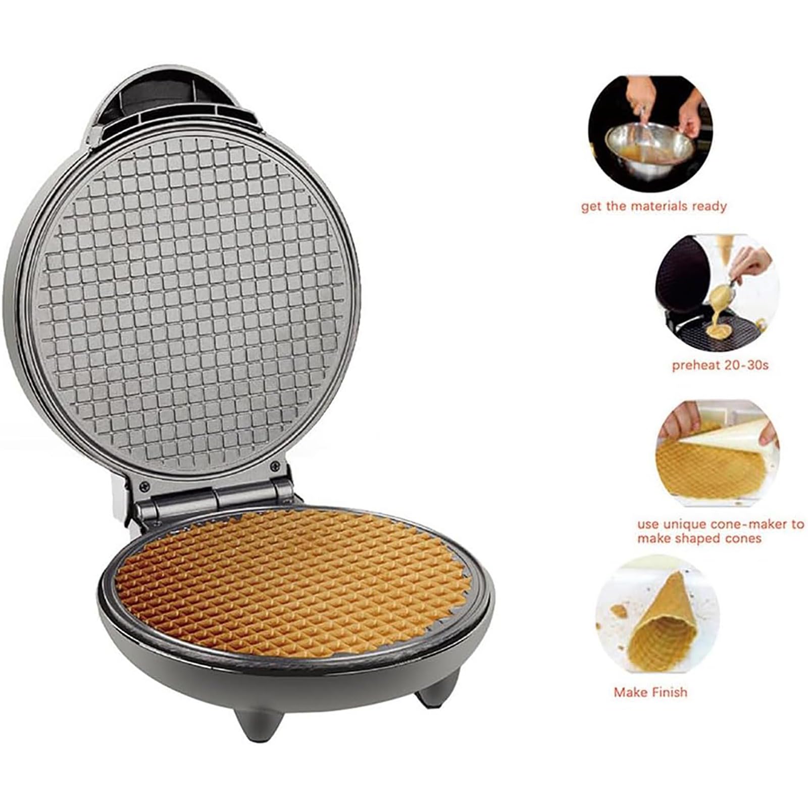 - 【INNOVATIVE DESIGN】 Allows you to make your own delicious ice cream cones, egg rolls, or waffle in just a few minutes. The perfect gift for wedding, children in festival or a new family gift.