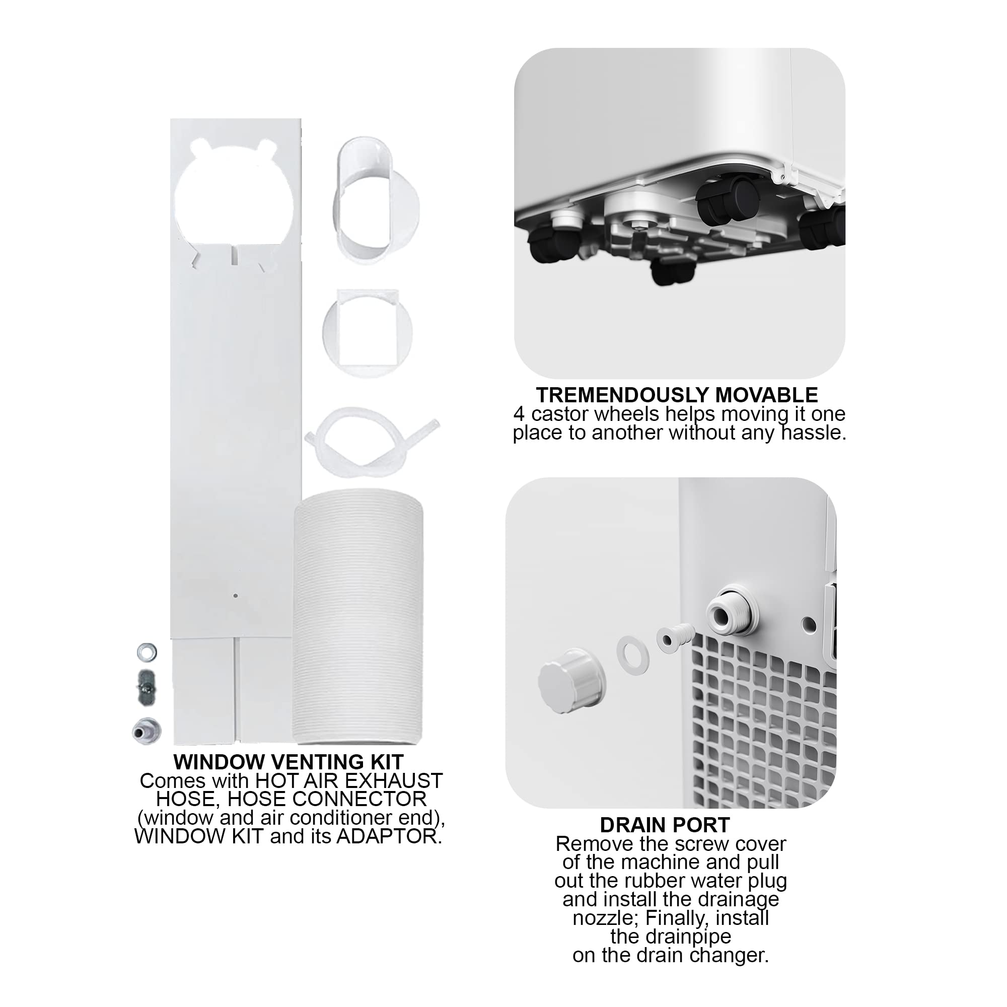 - 【DUAL WINDOW KIT & WINDOW SEAL】 This Air Conditioner includes EASTY TO INSTALL ventilating kit for all kinds of window, Comes with a dual window kit for slide window, single/double hunged window & window seal for hinged windows.