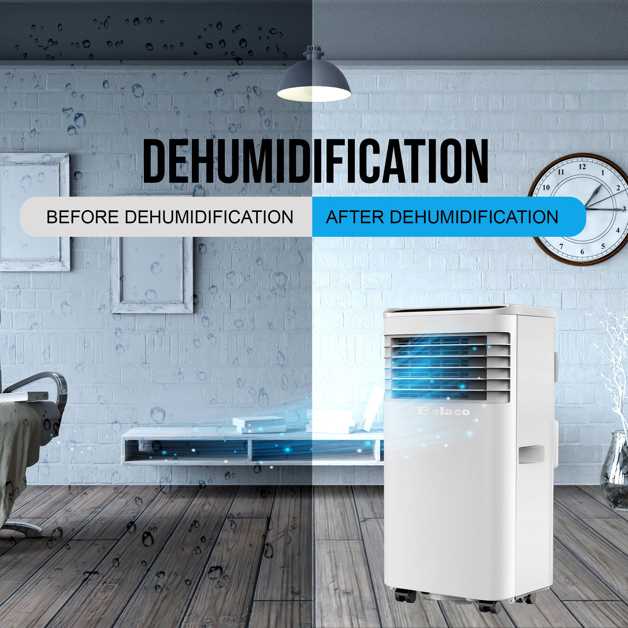 - 【4-IN-1 FEATURES】 The Belaco portable air conditioning has 4 multipurpose features modes which is including NIGHT MODE, COOLING MODE, DEHUMIDIGYING MODE, 2 SPEED FAN MODE which will give you full control on your preferences.