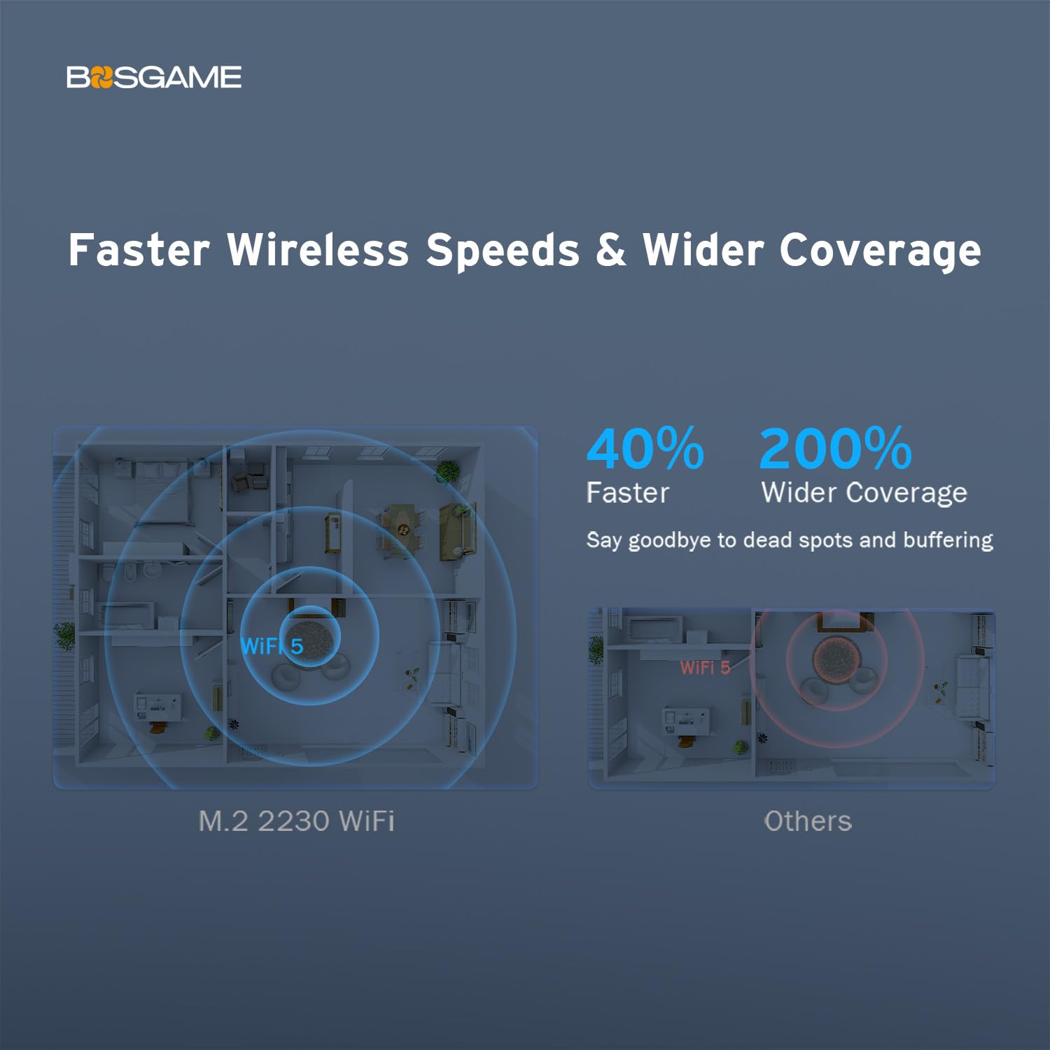 - 🌠【Experience smooth networking】The integration of a stable and fast Gigabit Ethernet(2.5G LAN) connection, alongside the built-in M.2 KEY E 2230 WiFi module(WiFi 5-802.11ac technology), makes the Bosgame B100 micro PC well-suited for reliable networking performance. The inclusion of a 2500Mbps Gigabit Ethernet port facilitating rapid downloading and uploading of large files with ease, and the Wi-Fi 5( 2.4G+5G Dual-band WiFi), users can benefit from optimal connectivity options, ensuring high-speed data transfers.