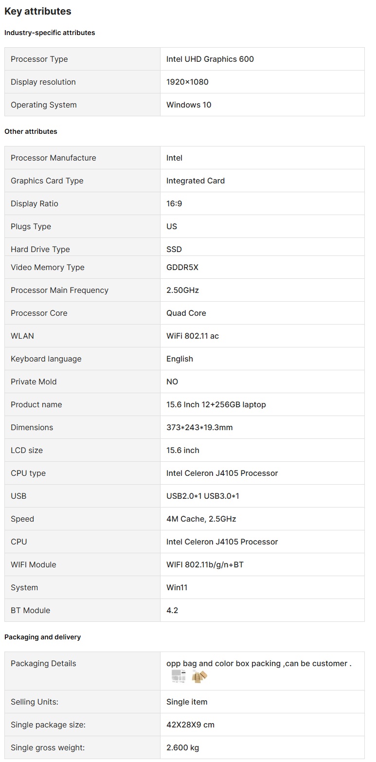 Cheap gaming laptop VGKE 15.6 Inch Intel Celeron J4105 12 GB DDR3 256GB SSD Win11 Color: Silver