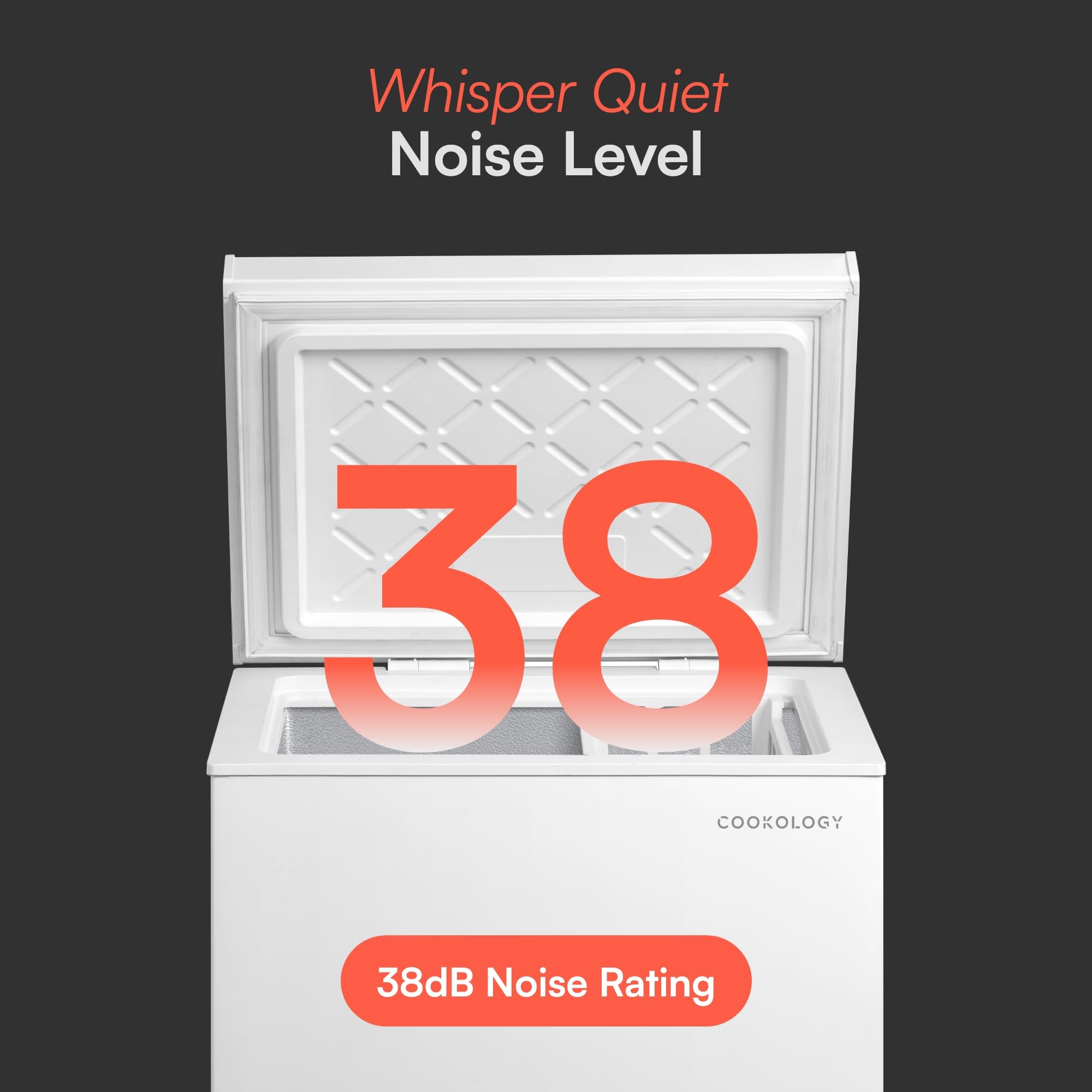 - QUIET & EFFICIENT: The entire Cookology range comes with an advanced compressor to keep things quiet, the running noise is 41 Decibels which is a level similar to a whisper. The freezers come with an F Freezer Rating making them cheap to run. The Freezer has a 4 Star Freezer rating for its ability to maintain a temperature of -18℃, making it safer for long term storage of Frozen goods.