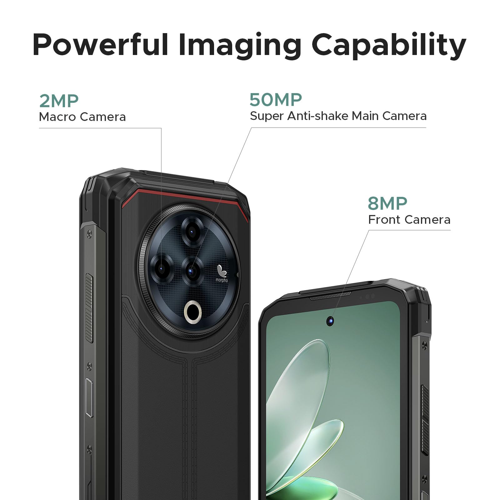 - 【50MP Main Camera & AI Algorithms】DOOGEE Fire6 Power rugged phone features a 50MP main camera for sharp and vibrant photos. An 8MP front camera handles selfies with ease, while a 2MP macro lens captures intricate details up close. Enhanced by Morpho Imaging and powered by AI algorithms, Fire6 Power android phone delivers exceptional camera features. Enjoy Portrait Beautification, Panoramic Mode, Night Mode, an extensive range of photo filters, and a Pro Mode for manual adjustments.