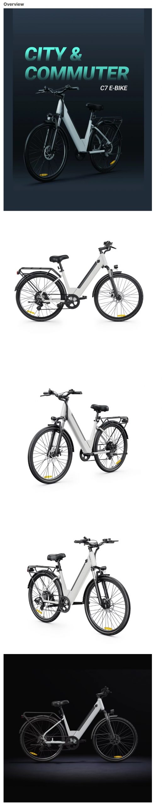 DYV C7 700C 26″ 36V 14Ah 350W Electric City Bicycle Aluminum Alloy Frame with Step Thru Hidden Lithium Battery Color: Black