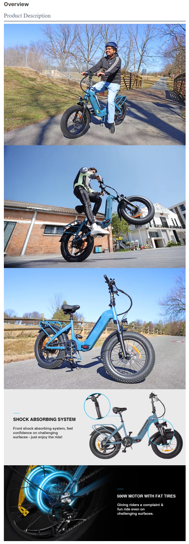 DYV FF500 2024 E bike 20″ 48V 14AH 500W 7 Speed fat tire Hybrid Ebike Off Road Mid Drive Color: Sky Blue