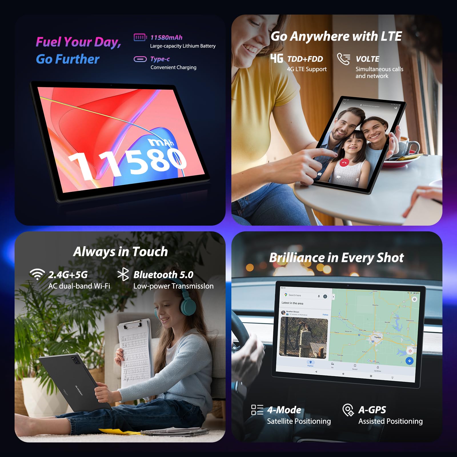 FLYCOAY Tablet 14 inch Android 14 Tablets, 256GB ROM(Expand to 2TB),36GB(12+24) RAM, Octa-Core 2.0GHz,11580mAh Battery, 2000 * 1200 FHD 4 Speakers, 4G LTE/5G WiFi, with Case,Pen,Earphone,Gray