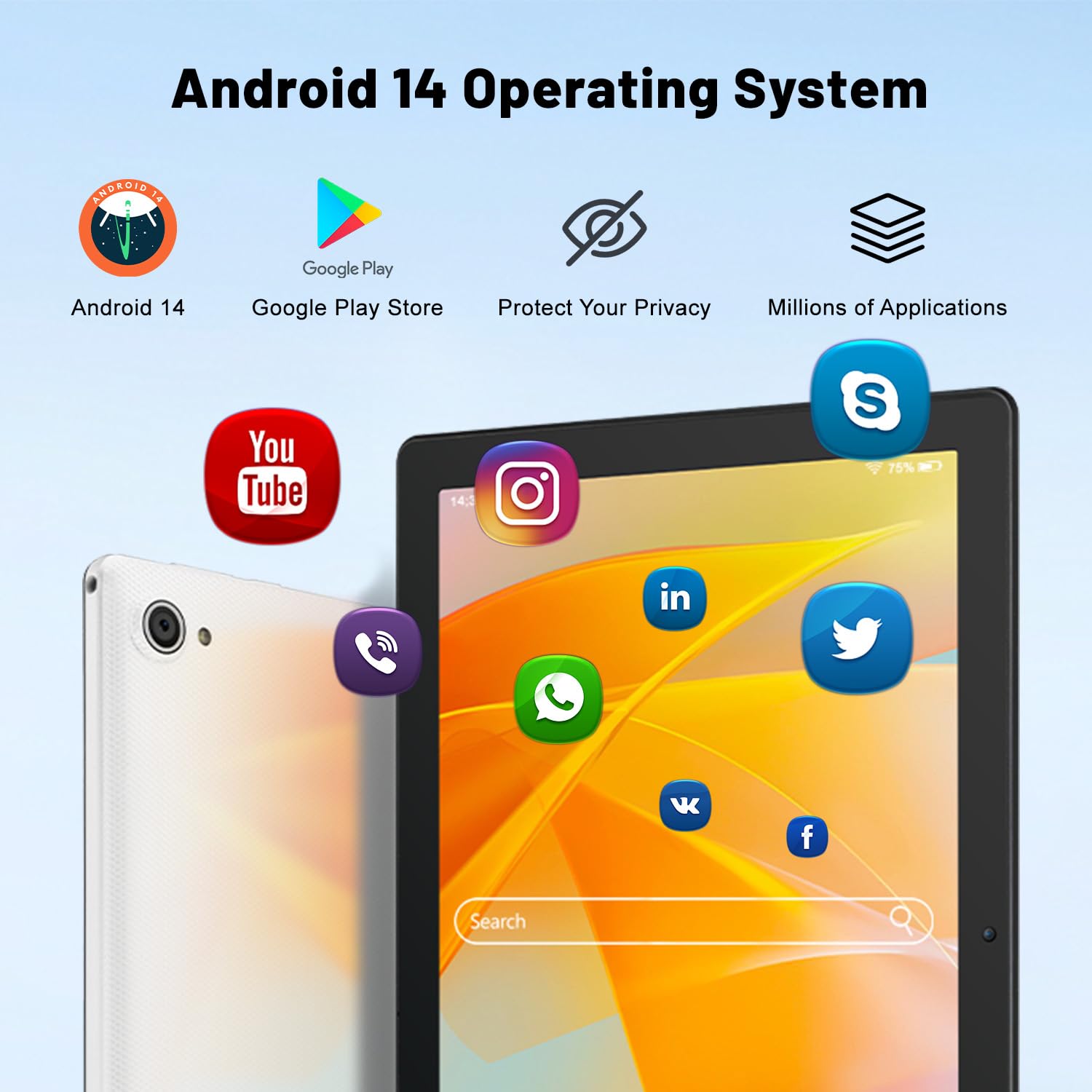 - Latest Android 14 & Octa-Core: The tablet is equipped with the latest Android 14 operating system, improving performance, privacy security and user experience. Stable octa-core processor with a maximum frequency of 2.0 GHz, promotes the speed of program execution and mobility for Internet browsing.