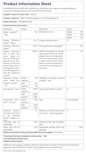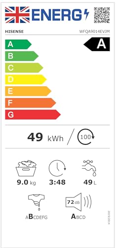 Hisense 3 Series WFQA9014EVJM Freestanding 9 KG Front Load Washing Durable Inverter Machine Steam Wash Quick Wash 15 Washing Programs 1400 RPM White- Energy Rating A