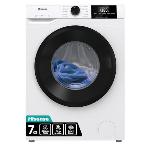 Hisense WF1G7021BW Freestanding 7 KG-Front Load Durable Inverter Washing Machine, Steam Wash-Quick Wash-15 Washing Programs-1200 RPM-White-Energy Rating B