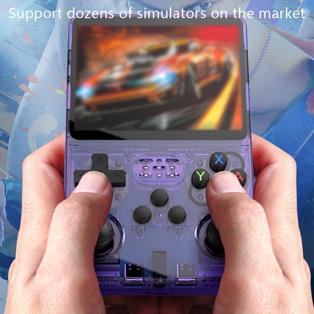 Keyboy Game Console R36S Retro Handheld Game Console with 64/128G Built-in 21000+ Classic Games, Open Source Linux System 3.5 Inch IPS Screen Portable Pocket Video Player (Purple Translucent 128G)