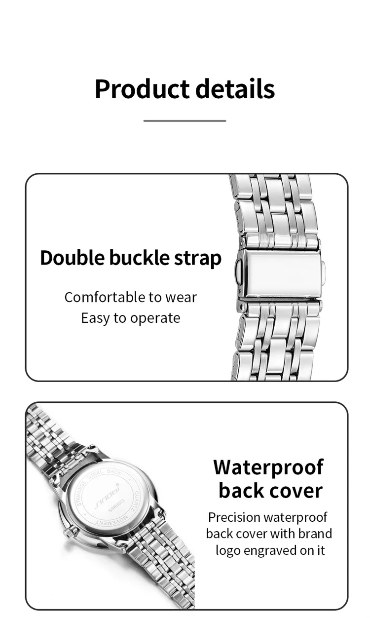 Luxury Fashion Alloy Couple Watch for Men and Women Waterproof Quartz Movement Stainless Steel Band Calendar Feature