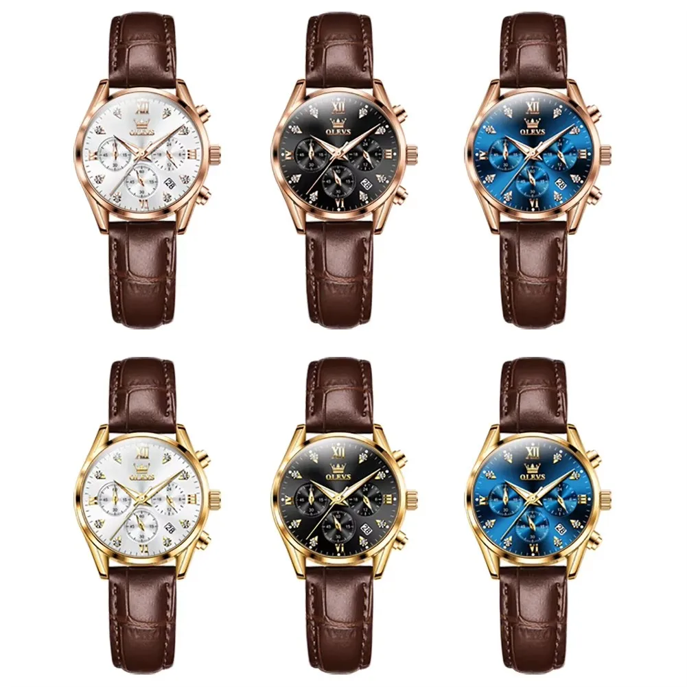 OLEVS 5523 Top Luxury Elegant Watch Women Waterproof Luminous Ladies Genuine Leather Strap Quartz Women’s Watches Girls Reloj