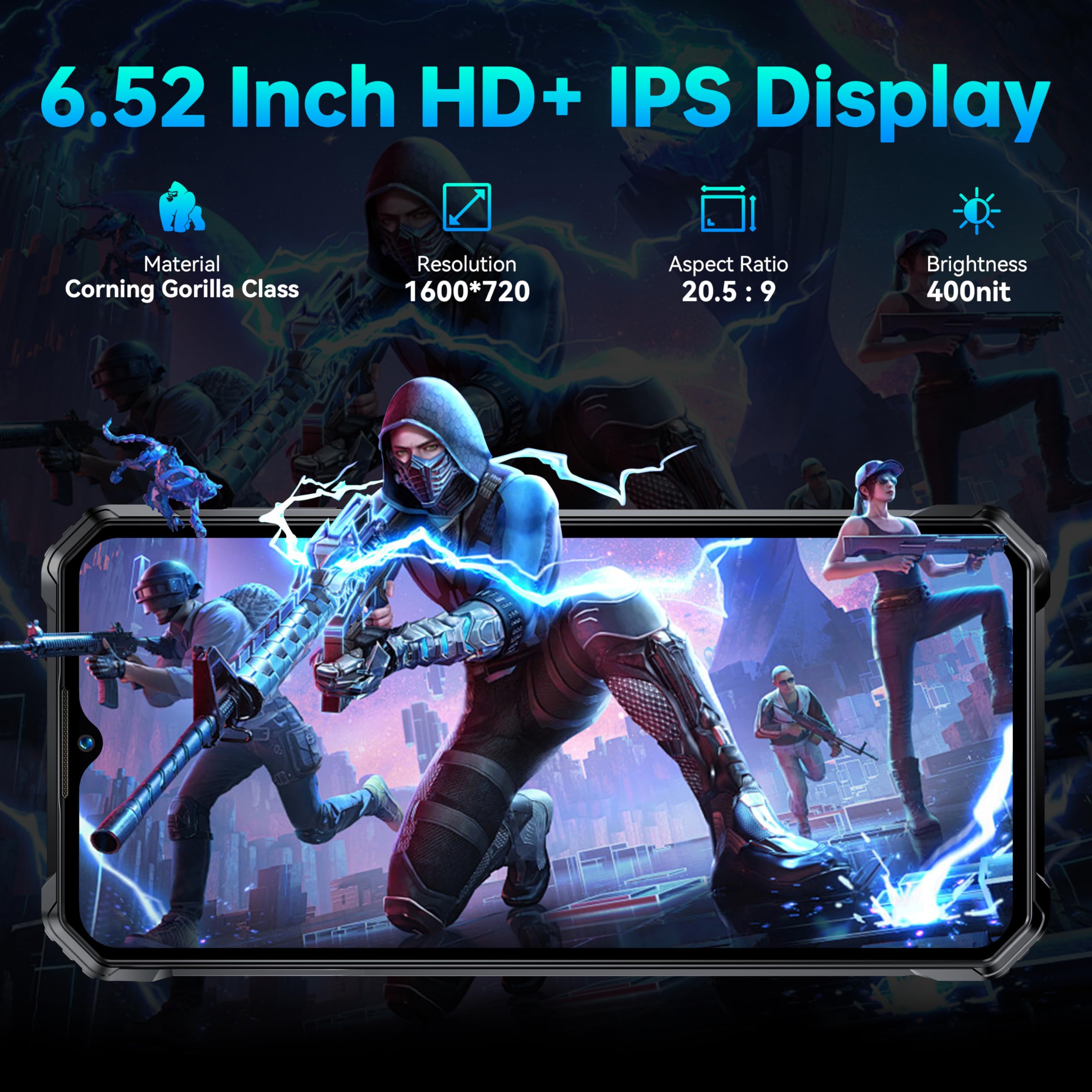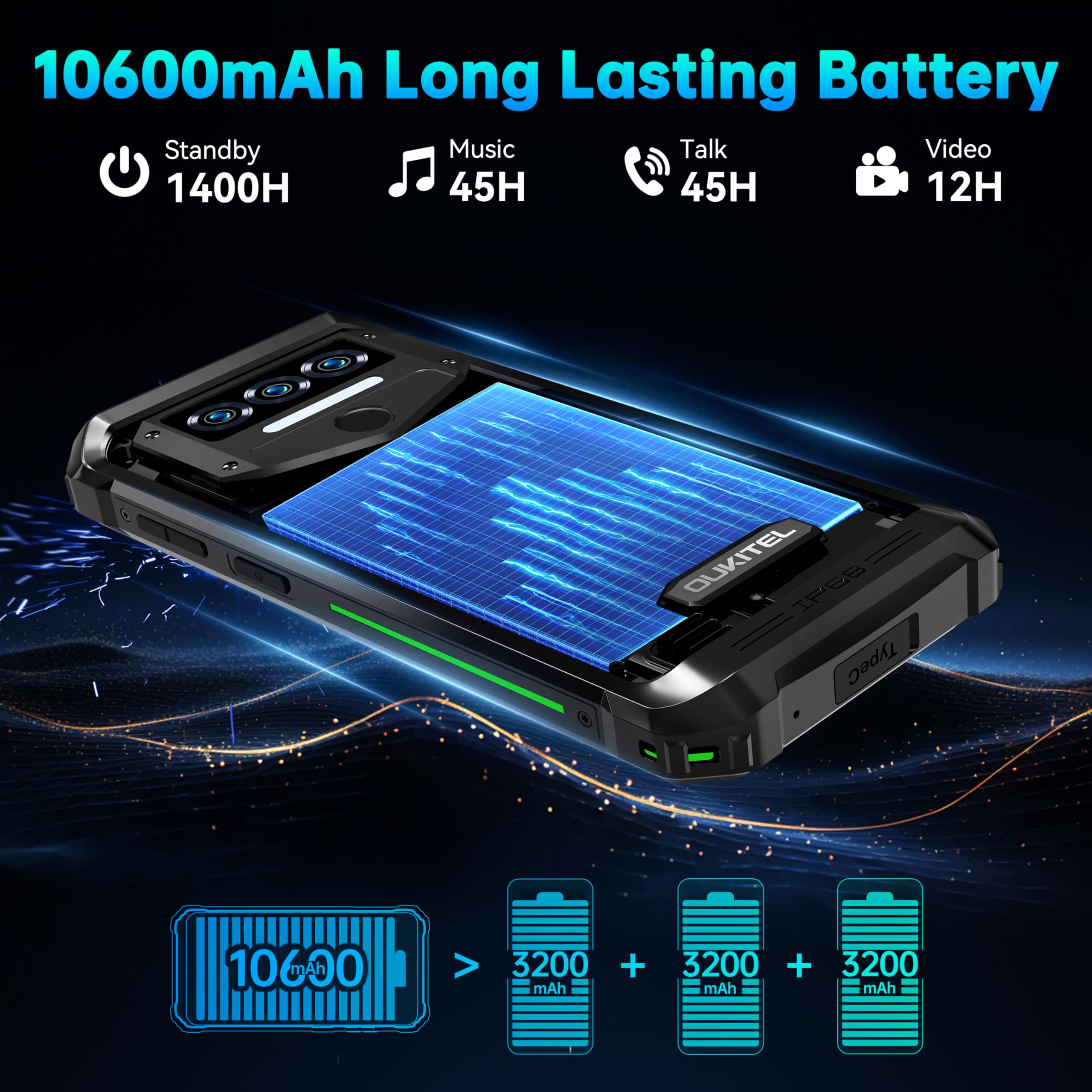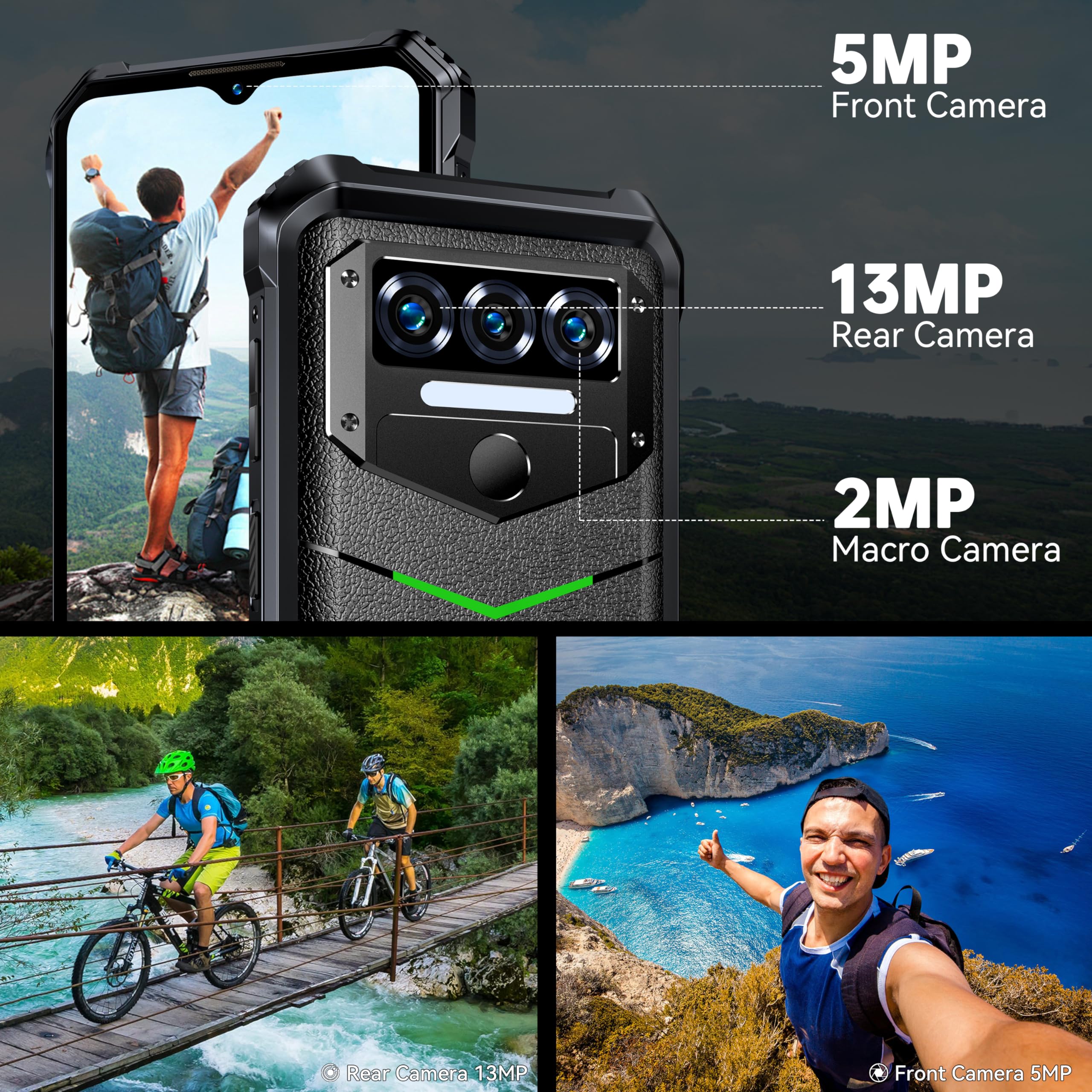 OUKITEL WP38 Rugged Smartphone 2024-12GB+256GB/1TB Expansion 10600mAh Octa-Core Rugged Phone, 6.52”HD+ 13MP Camera Android 13 Indestructible Phone, IP68/IP69K/Face ID/Fingerprint/NFC/OTG/GPS Black