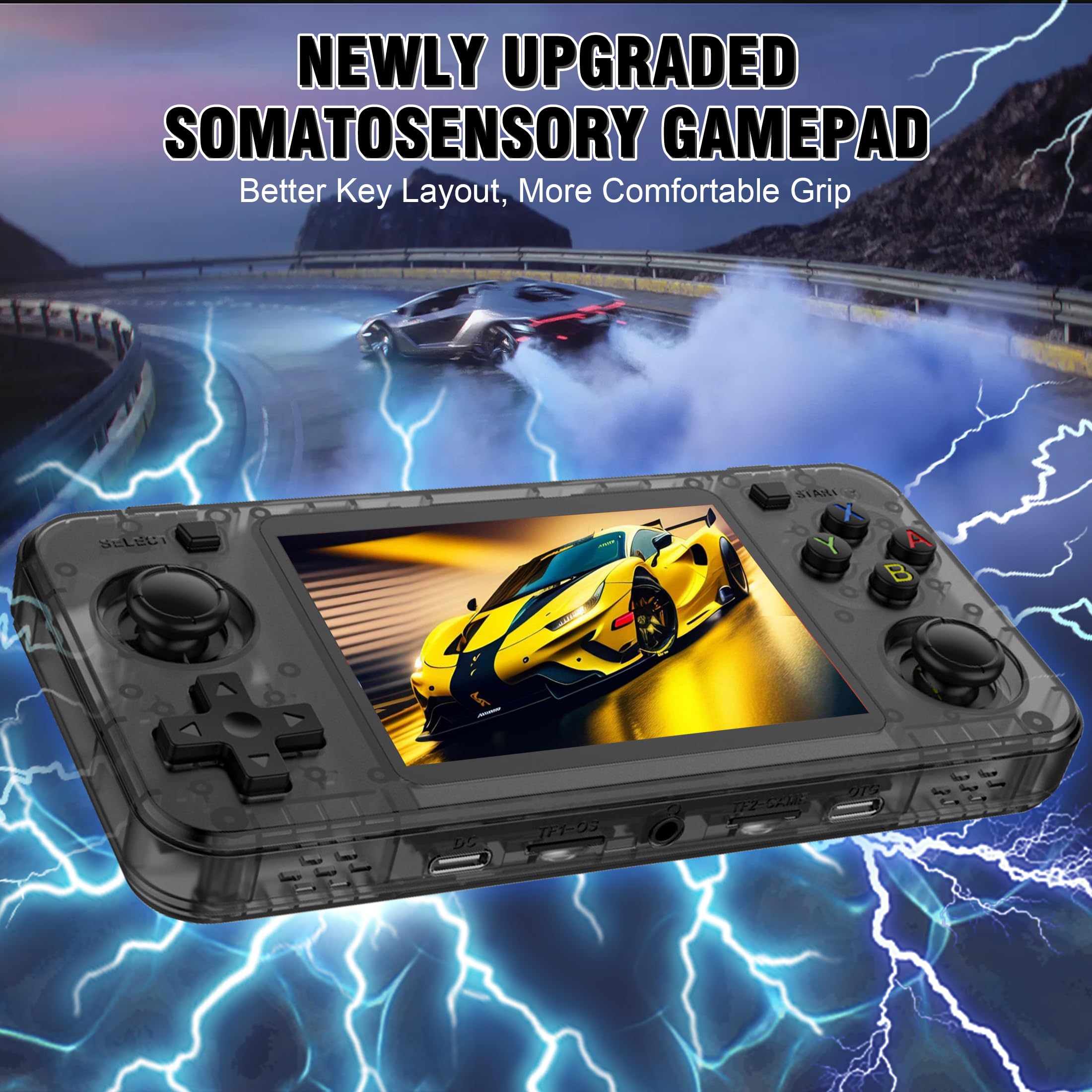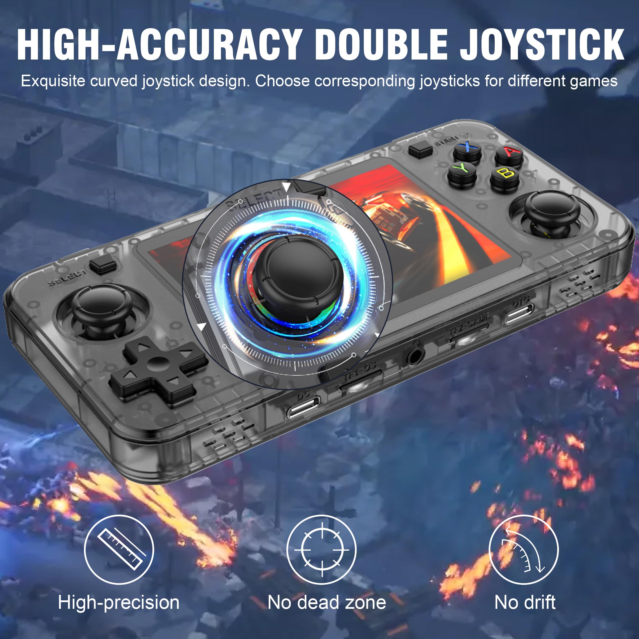 R36H Retro Handheld Game Console with Open Source Linux System,Cortex-A35 CPU, 64GB TF card comes with over 10,000 classic games,3.5-inch IPS Screen Portable Classic Handheld Game Console-Black