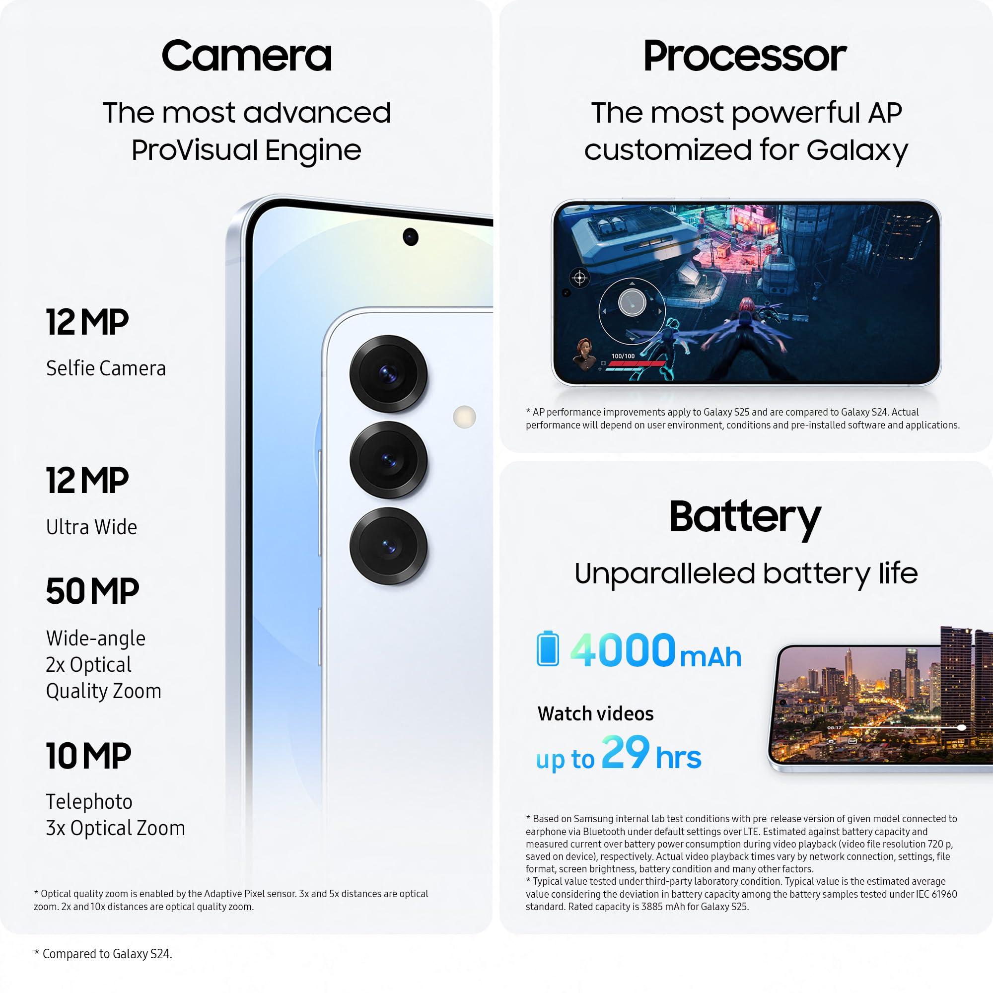 Samsung Galaxy S25 AI Smartphone, Galaxy AI, 12GB Memory, 128GB Storage, 50MP Camera, Silver Shadow, 3 Year Manufacturer Extended Warranty (UK Version)