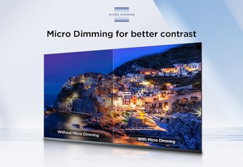 - 【Micro Dimming】Micro Dimming analyses the TV picture in thousands of separate zones to adapt the brightness. Picture quality is significantly improved for a better visual experience, especially in the dark.
