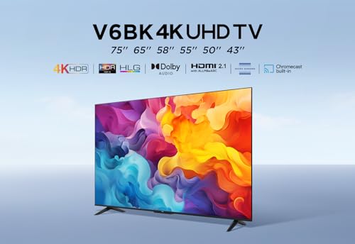 TCL 55V6BK 55-inch 4K Ultra HD, HDR TV, Smart TV Powered by Android TV (Dolby Audio, Voice Control, Compatible with Google Assistant, 2024 New Model)